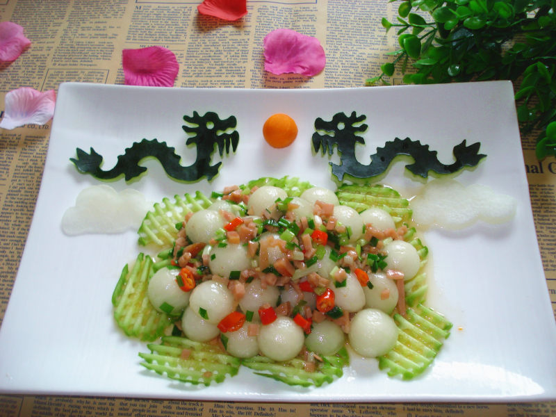 8:用冬瓜皮做个龙,(龙是用模具刻的)