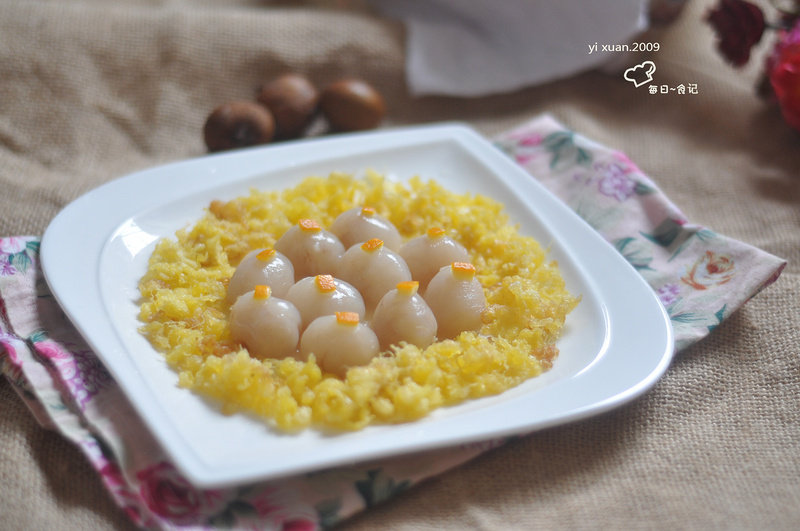 14:最后把芡汁浇上龙眼上面,进行最后的点缀即可