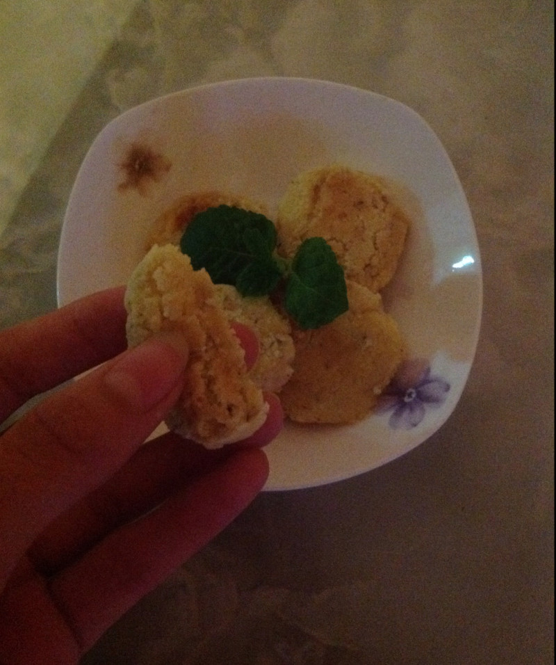 8:取一小块,按成小饼干,放在预热好的电饼铛上,一面烤完再烤一面,(不放油)