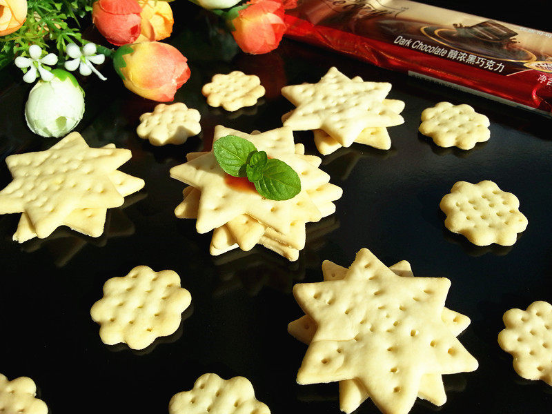 18:烤箱中层180度上下火烘烤15分钟。至饼干表面微金黄即可。