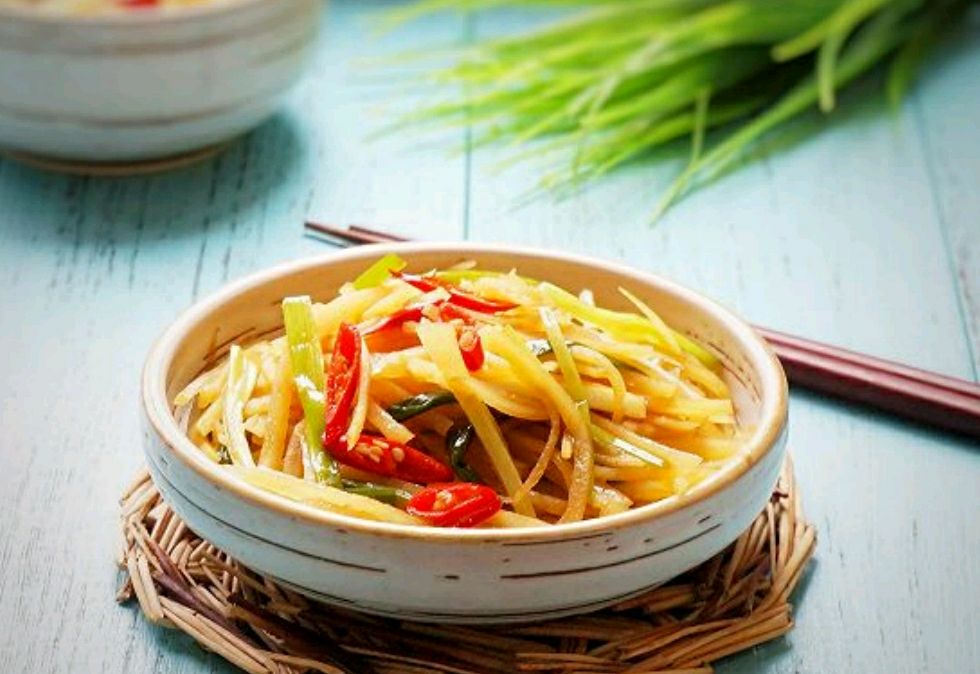 来一道爽口的小炒——酸辣土豆丝。土豆被称为营养最高,热量最低的蔬菜,土豆的营养价值得到了人们的一致认同。土豆能帮助预防肥胖,更有利于控制血压!!