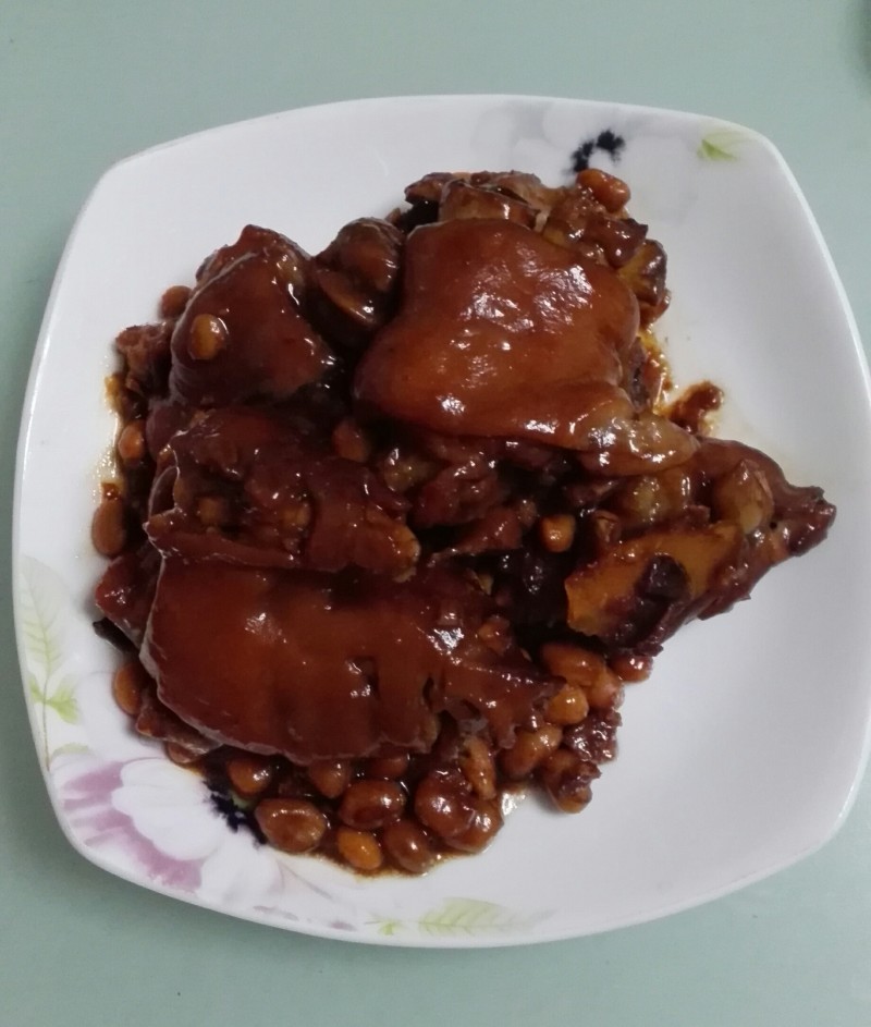 【小窍门】喜欢吃筋道的可以压30分钟。汽散了,就可以开盖享用。非常弹牙。花生豆和黄豆既解油腻,又下酒。不比猪手逊色。绝对的下酒佳肴。