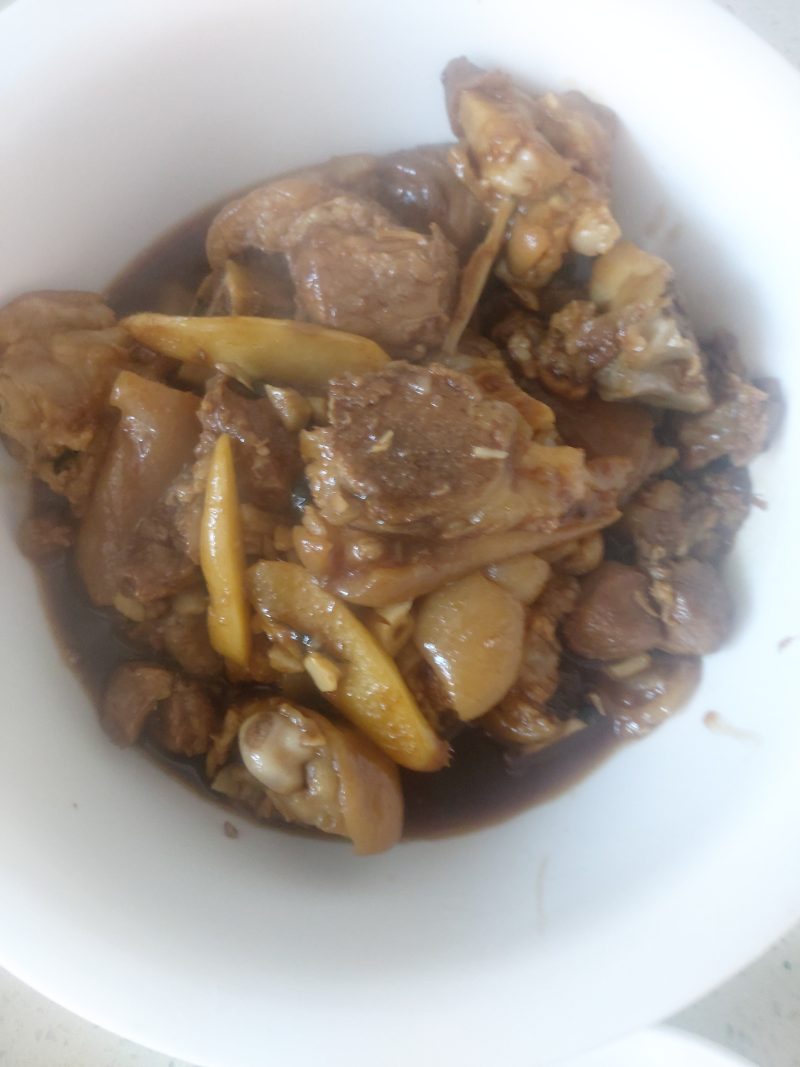 7:汤汁收到浓稠,包裹住猪蹄。就可以了。