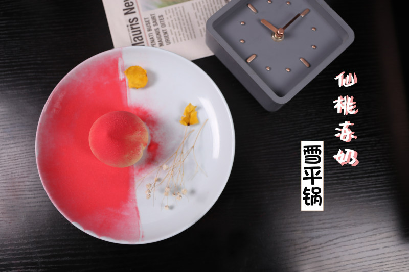 11:冻好后取出,撒上草莓粉,可可爱爱的仙桃冻奶就完成啦。