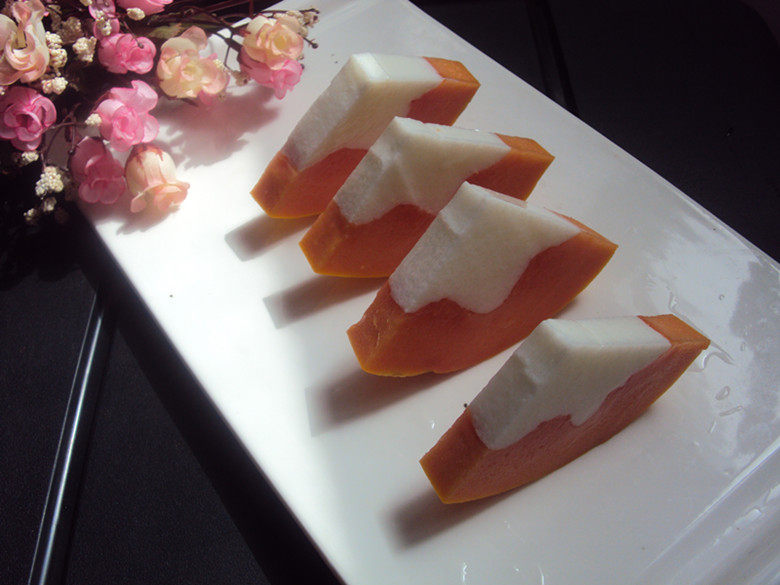 【小窍门】这道甜品美味做法又简单~尤其这样处理木瓜后~有种不同的感受哦~嘿嘿!~最后预祝亲们成功!