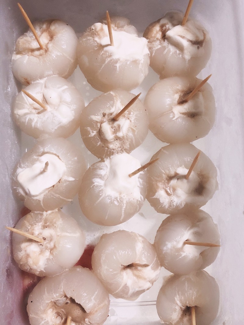 3:荔枝剥壳去核,冲洗干净,不要冲太久,不然味道冲淡了