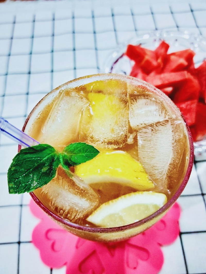 5:先把荔枝粒倒入杯中,在放入柠檬块。