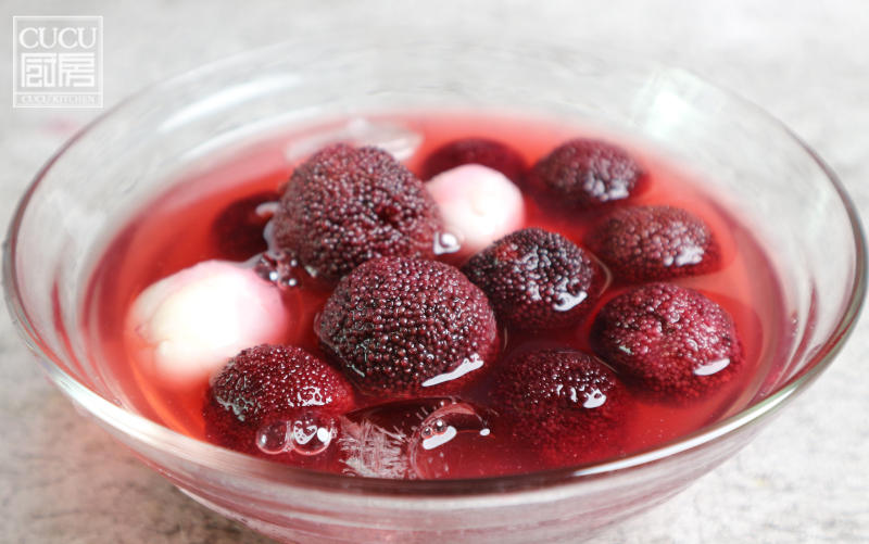 3:煮500ml水,待水开后转小火,加入1斤杨梅,根据个人口味加入冰糖,煮10分钟后加入5-6颗荔枝,再煮2分钟关火。