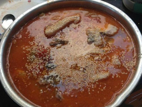 4、最后加芝麻再淋热油,能给成菜增香。油不可过多,过多喝起汤来就有些油腻。如果要养神身,喝时把油撇开就好。