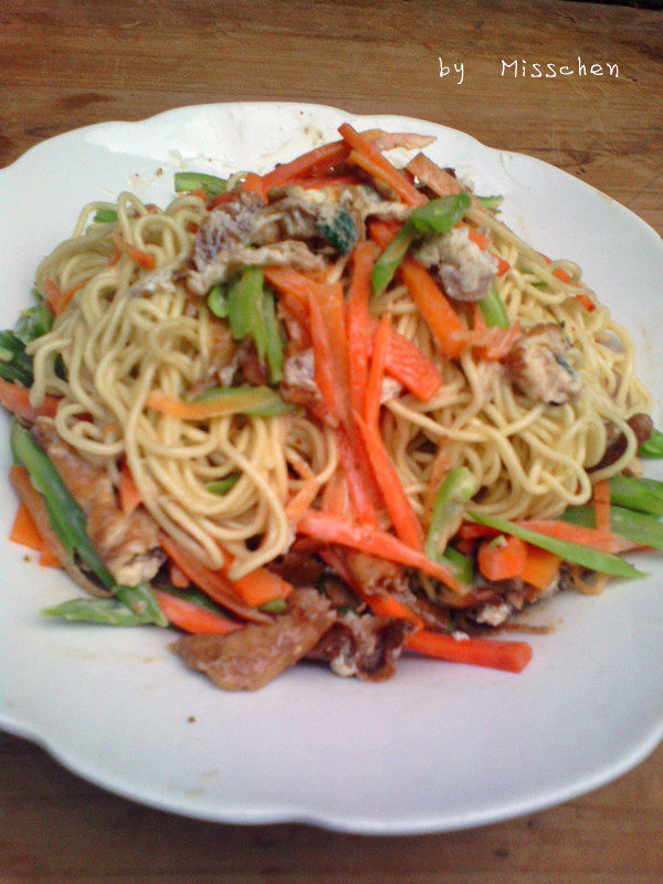 8:把面条蔬菜鸡蛋放进盘子里