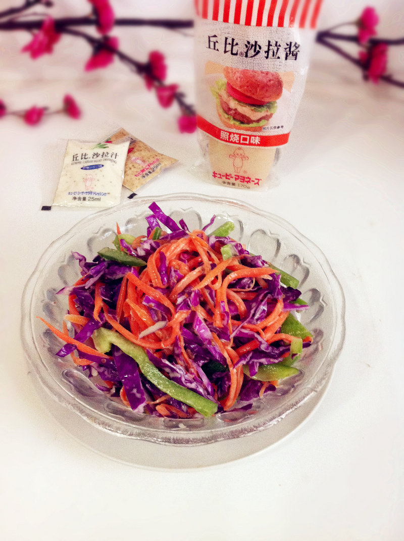 紫甘蓝100g;菜椒1个;胡萝卜1个;
