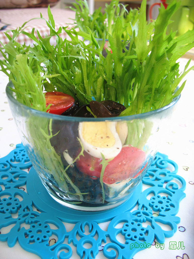 苦菊适量;木耳适量;鹌鹑蛋适量;小圣女果适量;