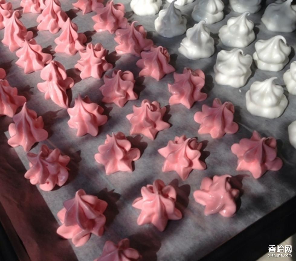 4.捣白:将冷却的糖坯进行捣白,并且打进一定量的空气使成梅花形并多孔。