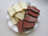 3.豆腐切块,蒜苗洗净切段,姜切片,辣皮子泡泡切段