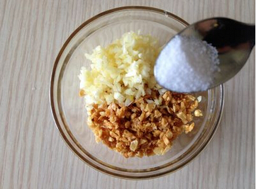 大蒜剁小粒。