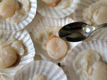 用小刀将元贝肉取出,顺便将足丝也去掉不要,只留贝肉和裙边就行了。